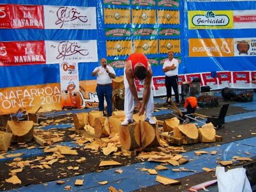 Se cortan troncos de determinadas medidas con hacha, en el menor tiempo. La escasez de hayas redujo este deporte que tuvo, en la Guipúzcoa de 1850 y 1930, a los mejores especialistas y las apuestas más famosas. Fue la época de Keixeta, Santa Agueda, Atxunberría, Hiyoya, Arriya, Errekalde, Korta, Goenaga, Irulegui, Mendizabal, Aguiñeta, Olazabal...Los troncos, talados en fecha reciente, llevan corteza exterior, sin nudos, hendiduras, fallos o defectos. El perímetro varía desde las 36 pulgadas (0,835 m.) hasta las 108 pulgadas (2,504 m.) y las longitudes mínimas, para dos cortes, desde 0,80 m. a 1,20 m. y, para un corte, desde 0,50 m. hasta 0,80 m. Los troncos no pueden alterarse (darles dureza o ablandarlos). La base o ipurdi se marca con una señal indeleble.
