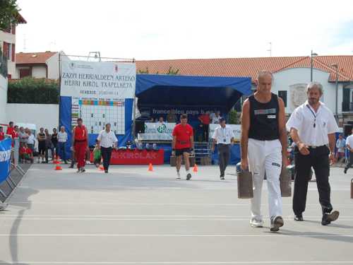 La carrera de Txingas consiste en llevar una chinga en cada mano en una plaza de 28 metros la mayor distancia posible. A esa distancia se le denomina plaza o clavo. No hay límite de tiempo y las txingas no pueden tocar el suelo. Si las txingas tocan el suelo se da por terminada la prueba. Tiene su origen en los trabajos que se hacían con el hierro. Iparralde no estaba tan industrializada como Hegoalde, es por eso que que transportaban marmitas de leche, de ahí surgió la modalidad de Ontzi Eramatea. El fundamento del juego consiste en trasportar una txinga cilíndrica de 50 kg en cada mano a la mayor distancia posible en una plaza de 28m de longitud. No hay límite de tiempo (pueden llegar a pararse) y se mide la distancia cuando la primera txinga toca el suelo. Esta competición surge por el transporte y almacenamiento del hierro en forma de lingotes desde las fundiciones hasta el lugar de destino. Existen 16 normas que forzosamente deberán cumplir todos los participantes de un campeonato de Txingas.